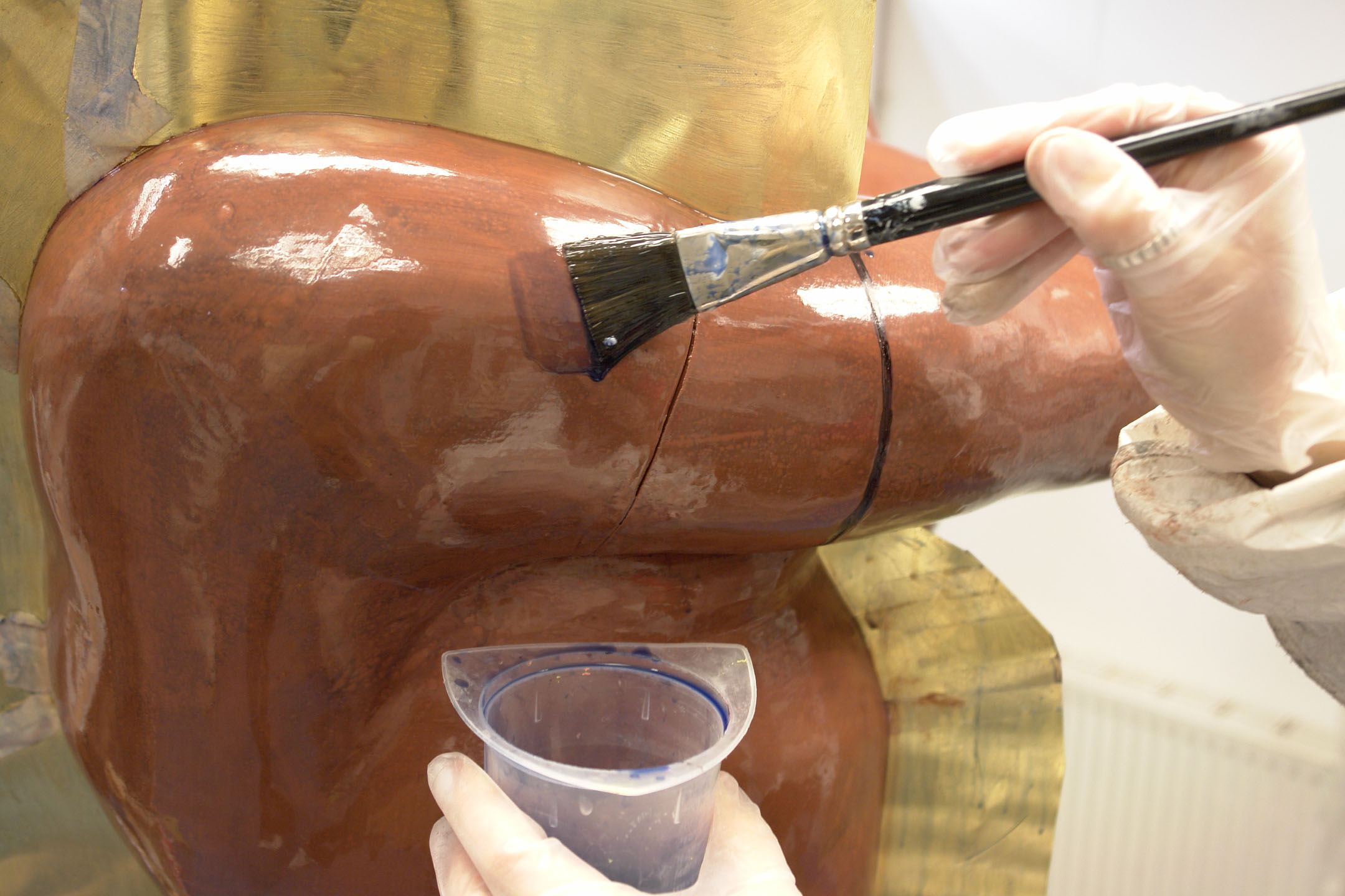 plasticine before being moulded and cast in wax. The hair and eyebrows