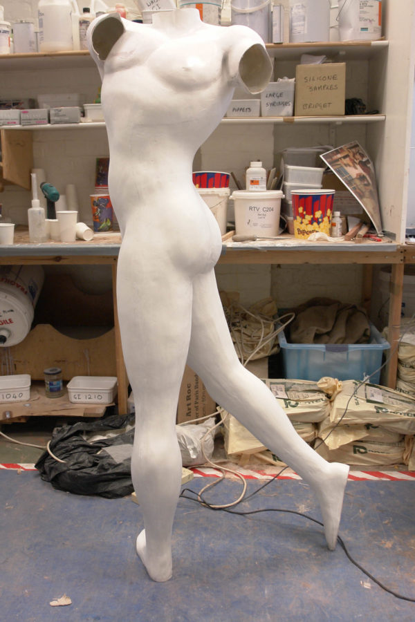 clay and cast out in lightweight fiberglass and the head was sculpted in