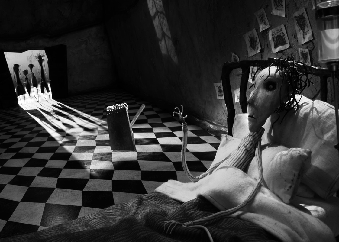 Over several months, Our team built handcrafted puppets, intricate miniature sets and animated the sequence in our Manchester studios. Following Tim's direction and drawings the aim was to give it a deliberately tactile, old-school feel that reflected Burton's aesthetic.